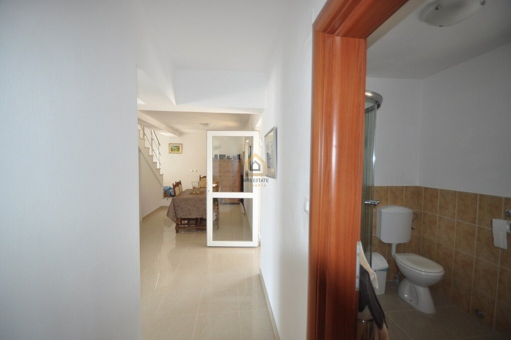 Z salonu prowadzi wyjście na większy taras bezpośrednio skierowany w stronę morza, stanowiący naturalne przedłużenie strefy dziennej i idealne miejsce do wypoczynku z panoramicznym widokiem. Drugi, mniejszy taras zlokalizowany jest od strony wejścia do budynku. Frontowy taras przechodzi w otwarty dziedziniec, gdzie znajduje się starannie zaaranżowana przestrzeń z basenem oraz strefą do opalania.