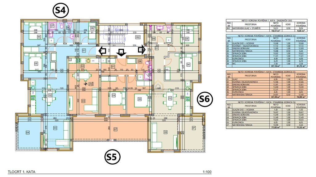 Mieszkanie S5 znajduje się na 1. piętrze i ma łączną powierzchnię użytkową 81,50 m² (powierzchnia mieszkalna 62,58 m² + taras 24,81 m² + pomieszczenie gospodarcze 4,02 m² + miejsce parkingowe 12,50 m²). Składa się z przedpokoju, dwóch sypialni, łazienki, kuchni z jadalnią oraz salonu z wyjściem na piękny zadaszony taras o powierzchni 24,81 m² z widokiem na morze.