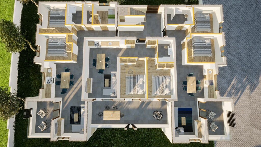 - Nowoczesne standardy wykończenia – termoizolacja, nowoczesna stolarka PVC, podłogowe ogrzewanie, klimatyzacja, wysokiej jakości podłogi i łazienki.