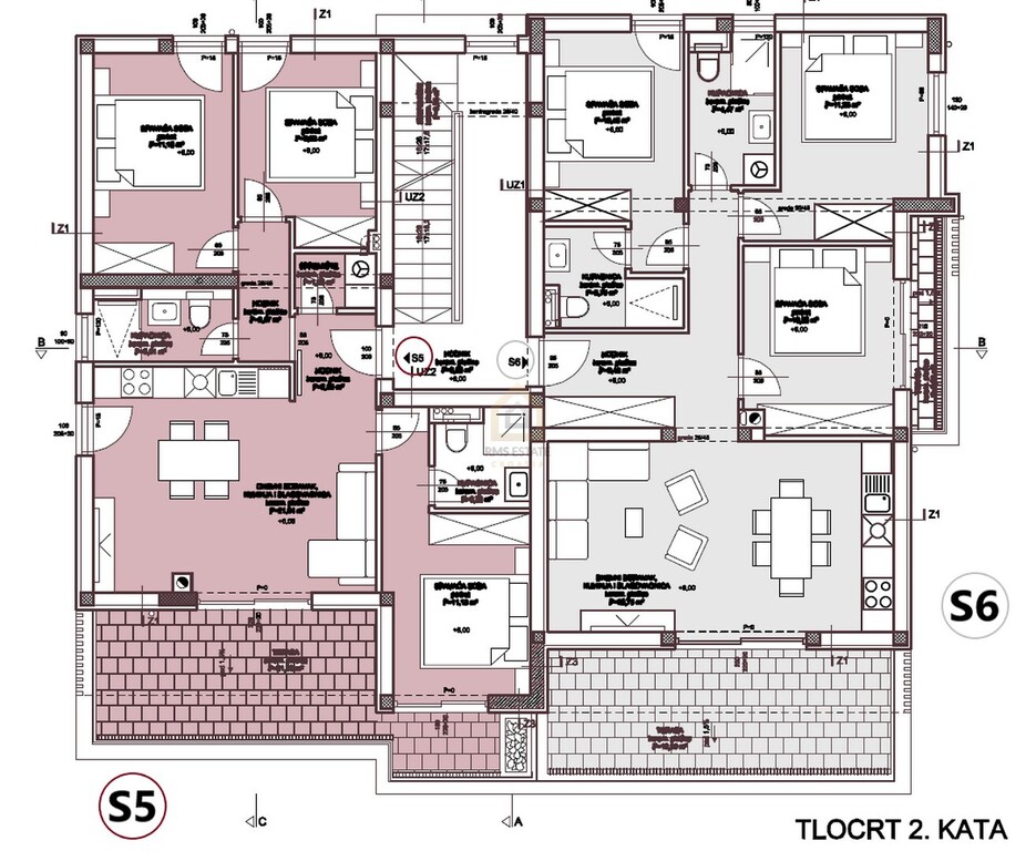 Mieszkanie SJ6 o łącznej powierzchni użytkowej 142,85 m² (powierzchnia mieszkalna 73,29 m² + taras 18,95 m² + taras 3,92 m² + taras na dachu 85,86 m² + parking 15 m²) znajduje się na 2. piętrze. Składa się z przedpokoju, trzech sypialni, dwóch łazienek, salonu z kuchnią i jadalnią oraz tarasu o powierzchni 18,95 m². Wewnętrzną wspólną klatką schodową można dostać się na 3. piętro (taras na dachu) o powierzchni 85,86 m², z którego rozciąga się piękny widok. Do mieszkania przynależy jedno miejsce parkingowe.
