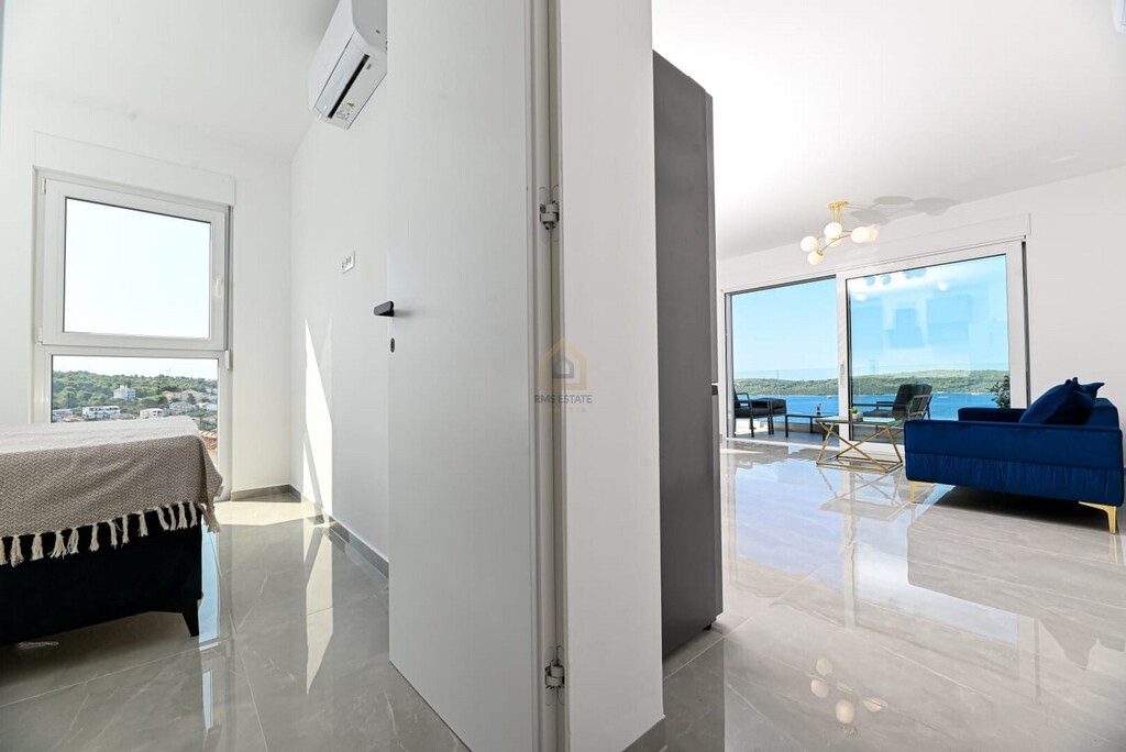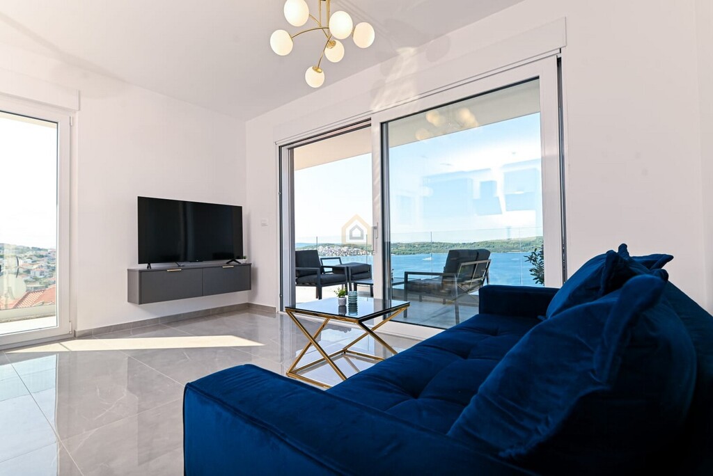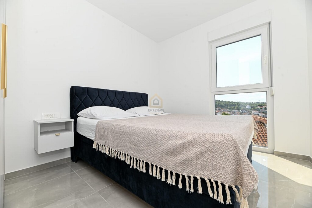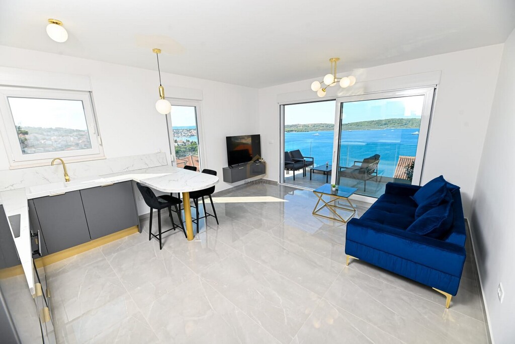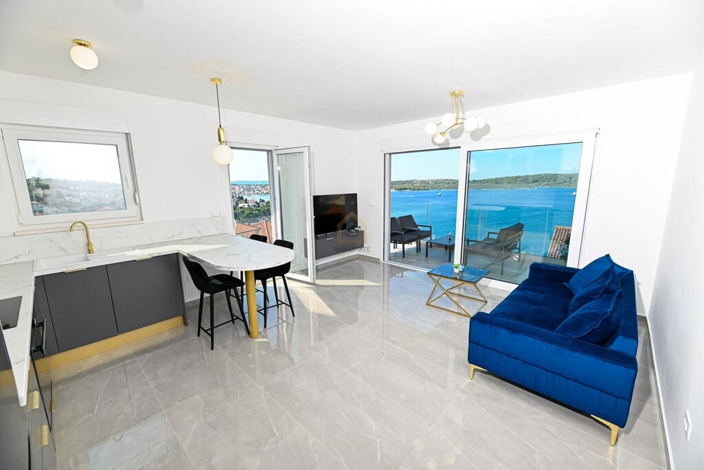 Penthouse z prywatnym tarasem na dachu Opis nieruchomości Na sprzedaż oferujemy wyjątkowy apartament typu Penthouse 2 o powierzchni mieszkalnej 58 m², z prywatnym tarasem na dachu i spektakularnym widokiem na morze oraz całą zatokę. To idealna propozycja dla osób szukających komfortu, prywatności i prestiżowej lokalizacji zaledwie kilka kroków od plaży i starówki Trogiru. Największe atuty