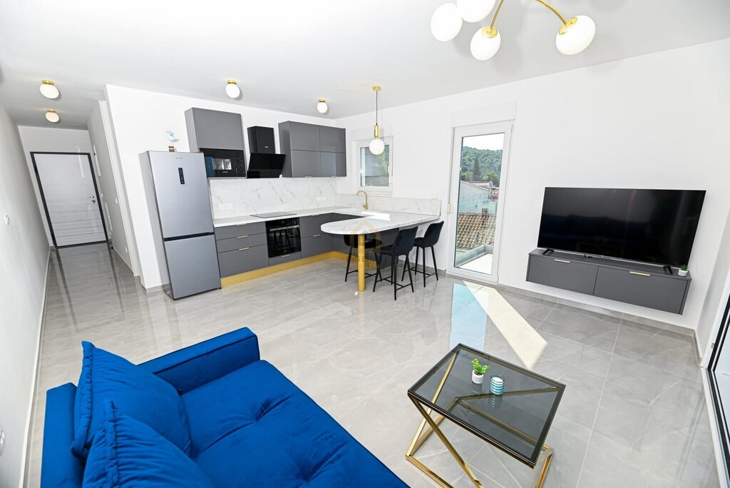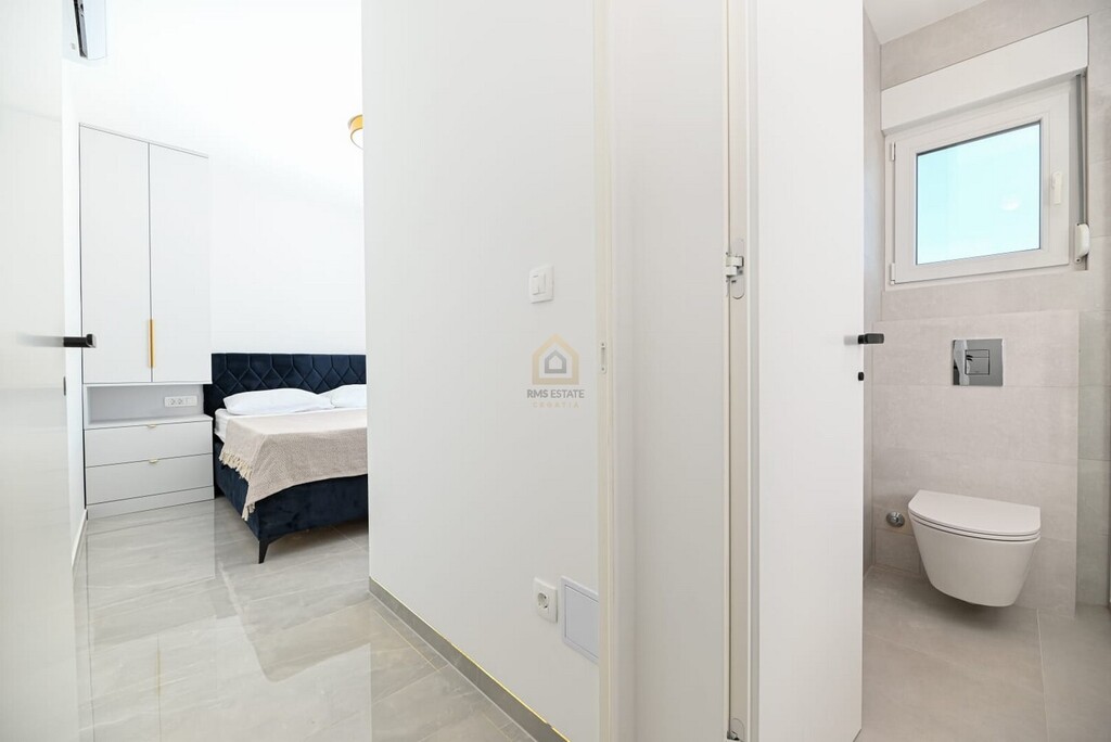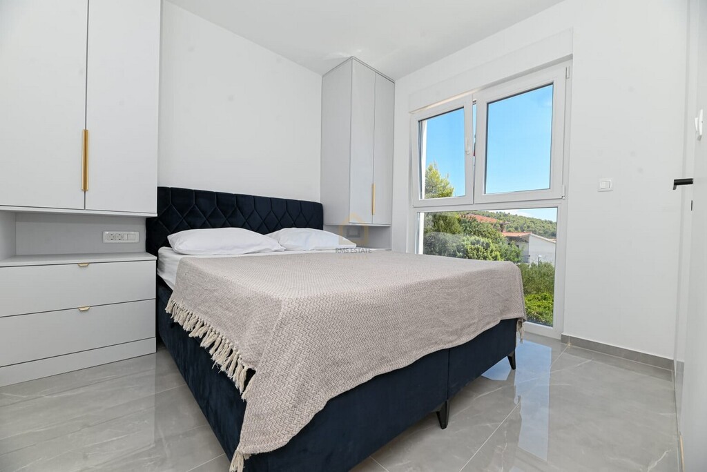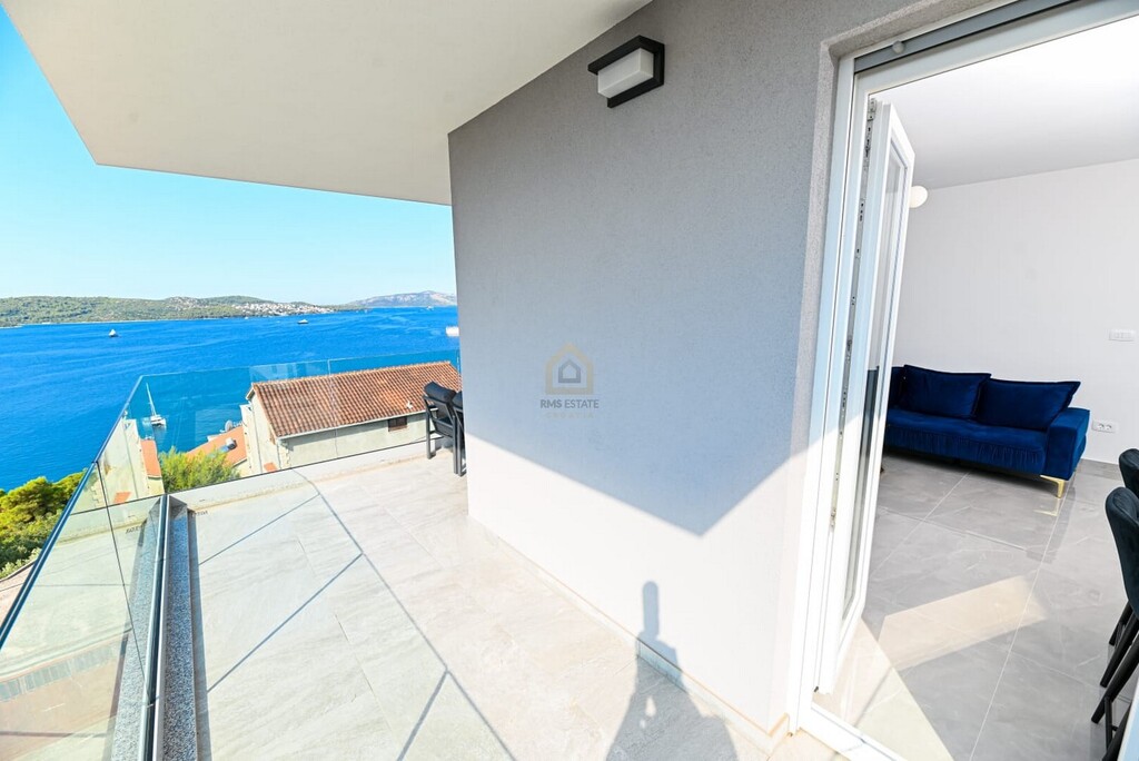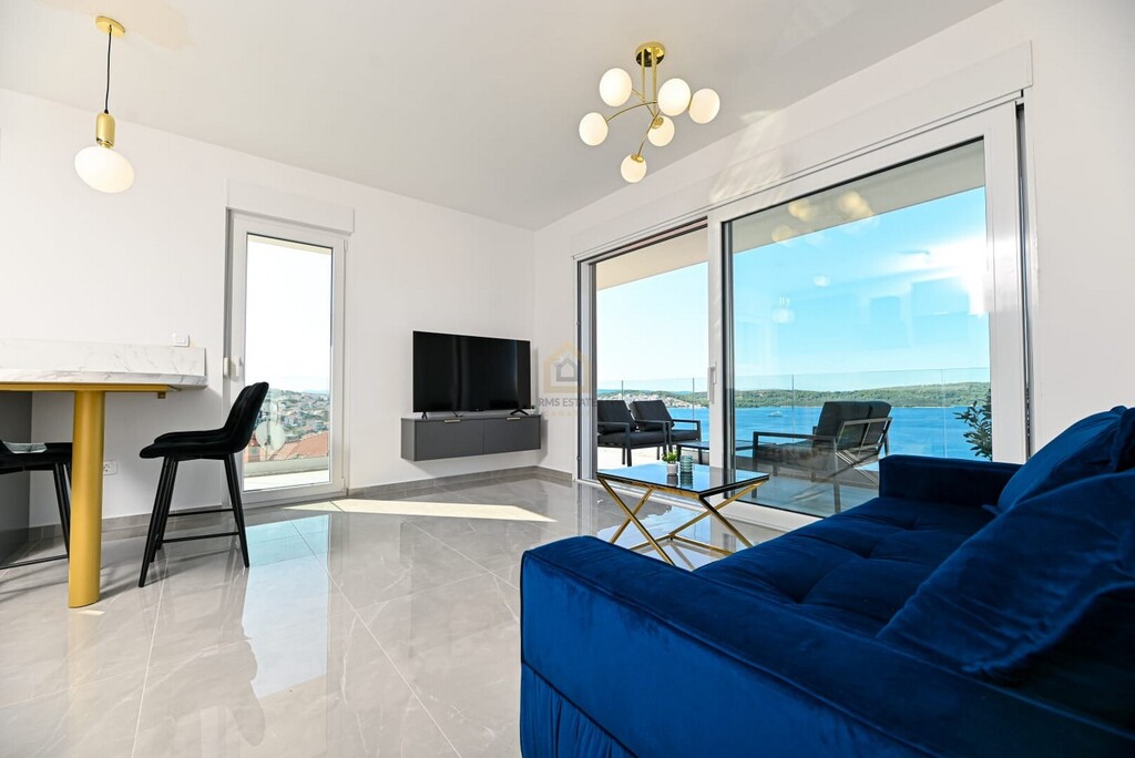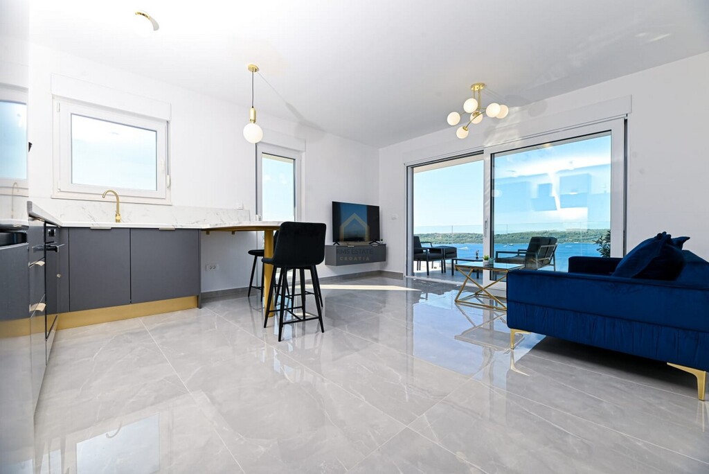 Penthouse z prywatnym tarasem na dachu Opis nieruchomości Na sprzedaż oferujemy wyjątkowy apartament typu Penthouse 2 o powierzchni mieszkalnej 58 m², z prywatnym tarasem na dachu i spektakularnym widokiem na morze oraz całą zatokę. To idealna propozycja dla osób szukających komfortu, prywatności i prestiżowej lokalizacji zaledwie kilka kroków od plaży i starówki Trogiru. Największe atuty