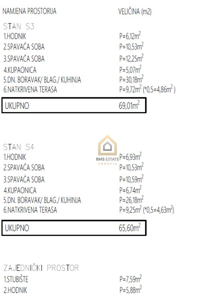 o całkowitej powierzchni użytkowej 70,60 m² (powierzchnia mieszkalna 65,60 m² + dwa miejsca parkingowe 25 m²) znajduje się na 2. piętrze.