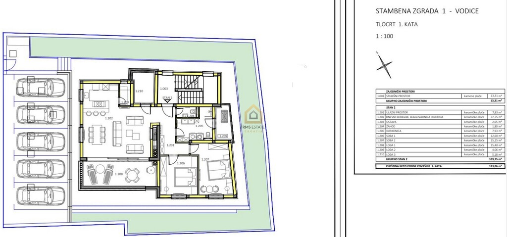 Mieszkanie S2 znajduje się na 1. piętrze kameralnej kamienicy i ma łączną powierzchnię 109,59 m², wraz z przynależnymi 2 miejscami parkingowymi.