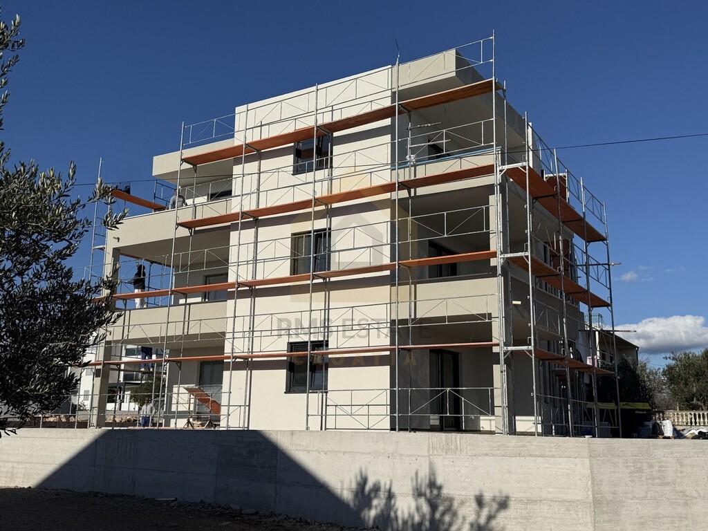 Vodice – W spokojnej części miejscowości na sprzedaż nowoczesne mieszkanie z tarasem i widokiem na morze, oddalone 600 m od centrum i 800 m od miejskiej plaży.
