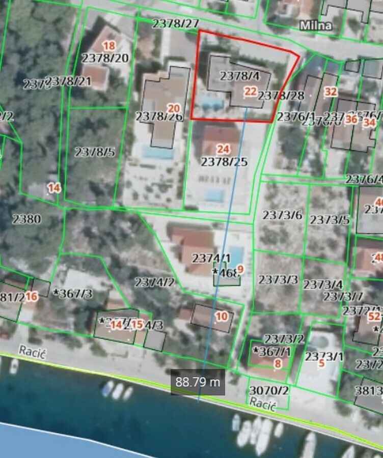 Na sprzedaż eleganckie apartamenty położone w atrakcyjnej lokalizacji na wyspie Brač, zaledwie 90 metrów od morza i nadmorskiej promenady. Nieruchomość znajduje się w kameralnym, trzypiętrowym budynku mieszkalnym zaprojektowanym z myślą o komforcie i śródziemnomorskim stylu życia. Budynek jest funkcjonalnie podzielony na dwie części. Jedna część obejmuje trzy apartamenty (po jednym na każdym piętrze), natomiast druga stanowi trzypoziomowy dom mieszkalny z prywatnym tarasem na dachu. Całość otoczona jest zadbaną przestrzenią wspólną z basenem, strefą do opalania, dziedzińcem oraz miejscem do grillowania. Wszystkie jednostki mieszkalne oferują piękne widoki na krystalicznie czyste morze i okolicę. Nieruchomość stanowi doskonałą propozycję zarówno jako luksusowa rezydencja wakacyjna, jak i inwestycja pod wynajem turystyczny w jednej z najbardziej pożądanych lokalizacji na chorwackim wybrzeżu.