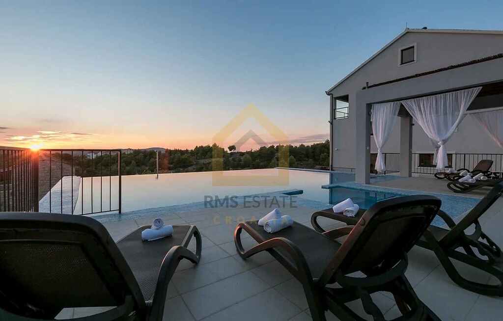 Ekskluzywne apartamenty czteropiętrowe z basenem i panoramicznym widokiem – Brač Prezentujemy wyjątkowo przestronne i elegancko zaprojektowane apartamenty położone w kameralnym budynku mieszkalnym na wyspie Brač, zaledwie 160 metrów od morza. Budynek łączy luksus, prywatność i komfort życia nad Adriatykiem. Do dyspozycji mieszkańców pozostaje wspólna przestrzeń z dużym basenem, pergolą i tarasem słonecznym, idealna do relaksu i spędzania czasu na świeżym powietrzu. Z apartamentów oraz wspólnego tarasu rozciągają się zachwycające widoki na morze i okolicę. Każdy apartament jest trzy kondygnacje + loft, połączone wewnętrznymi schodami. Wszystkie apartamenty są nowocześnie umeblowane i wyposażone we wszystkie niezbędne sprzęty. Powierzchnia całkowita każdego mieszkania wynosi około 181 m², a układ jest niemal identyczny. Najważniejsze atuty
